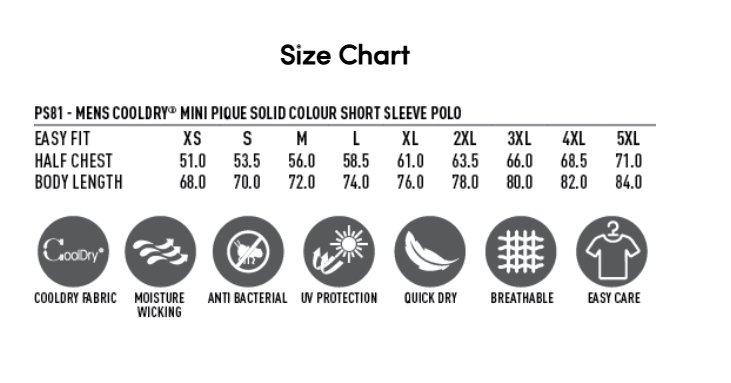 Made from 160gsm 100% CoolDry® polyester mini piqué, this garment features durable double-stitched hems, a flat-knit collar, self-coloured neck tape, and matching buttons for a clean, coordinated finish.