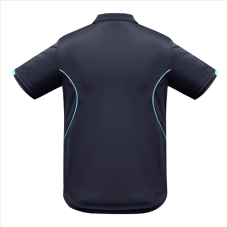 Features grid mesh underarm panels for enhanced ventilation, a unique sleeve print detail, contrast panels and piping, and a knitted collar with contrast placket.